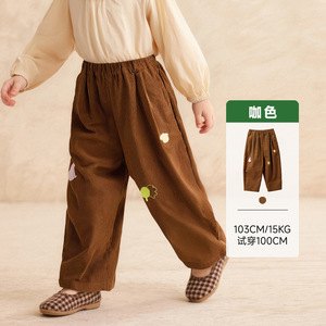 童贝童装2025年秋季新款男女童裤子卡通刺绣直筒百搭休闲长裤