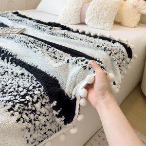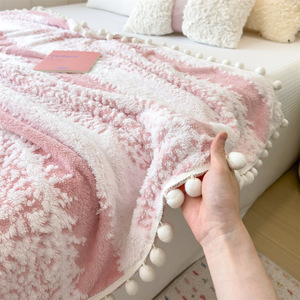 跨境流苏毛球多功能毛毯加厚午睡沙发盖毯办公室披肩空调小毯子