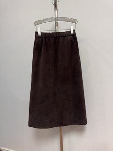 绵羊皮绒面皮裙女松紧腰休闲开叉真皮半裙2025秋冬新款直筒中长裙