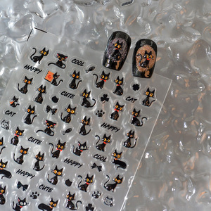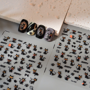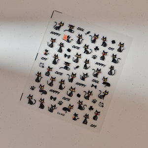 新款卡通小猫美甲贴纸超立体甜酷猫咪指甲贴美甲贴黑猫团子 批发
