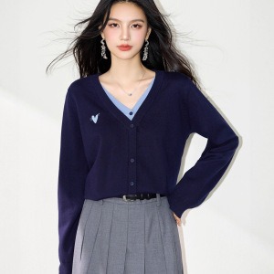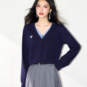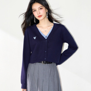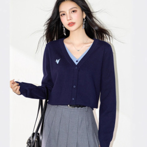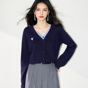 R5332秋季新款2025年假两件针织衫正肩毛衣女显瘦内搭长袖V领上衣