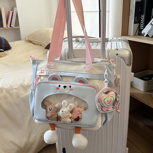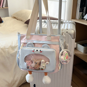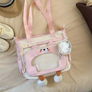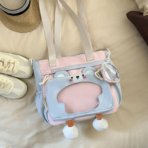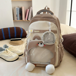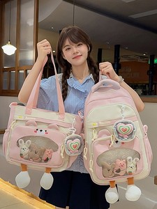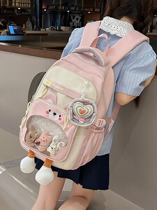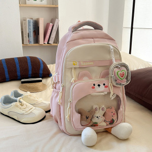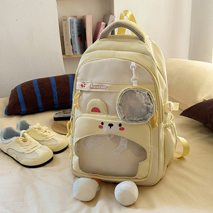 2025新款痛包女书包透明吧唧包百搭休闲猫猫双肩包学生书包批发包
