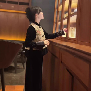 2025春秋冬新款新中式国风盘扣马甲外套+连衣裙两件套新春套装女