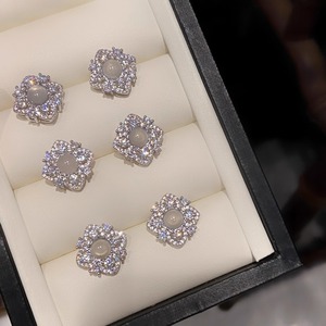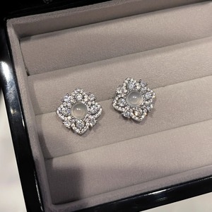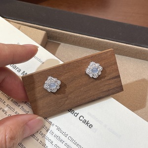 S925纯银法式复古天然白玉髓花朵耳钉女精致四叶草高级感气质耳饰