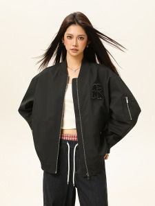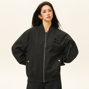 杰克传洋男装棒球服美式飞行夹克男女潮牌春秋季刺绣休闲黑色外套