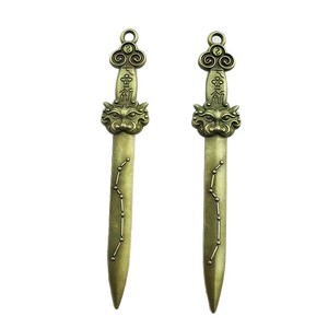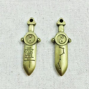 合金七星剑挂件仿黄铜做旧太极八卦剑吊坠创意七星剑钥匙扣配件批