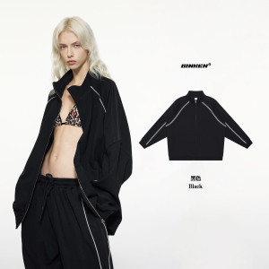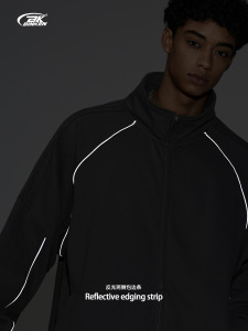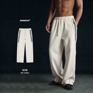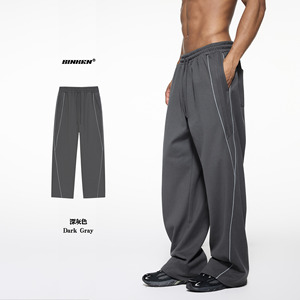 BK男装秋季365g反光条纹运动套装男美式开衫卫衣潮牌休闲直筒卫裤