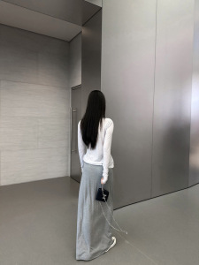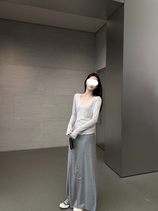5werkwen半身裙女夏季垂感磨毛宽松百搭软糯休闲简约灰色A字长裙