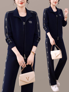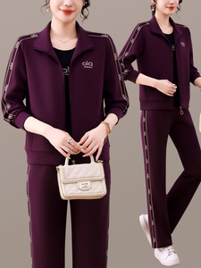 中老年跑步运动套装女2025年春秋洋气大码女休闲衣服妈妈气质外套