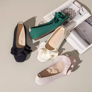 夏季增高单鞋裸穿鞋女式尖头荷叶边平底鞋蛋卷鞋女鞋透气玛丽珍鞋