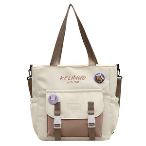 补习袋初中学生单肩包女拼色大容量拎书手提袋小学生上课斜挎包