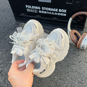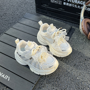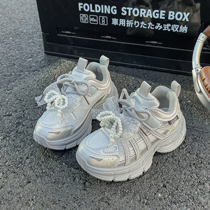 女童运动鞋舒适透气时尚老爹鞋2025秋季新款洋气珍珠蝴蝶结公主鞋