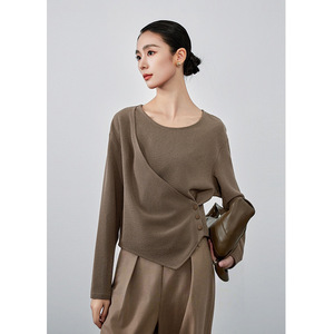 老钱静奢风休闲版型女秋冬新款2025不规则叠穿长袖时尚打底T恤衫