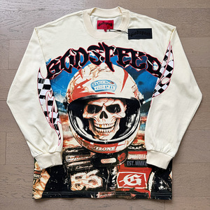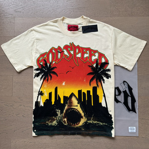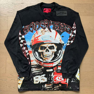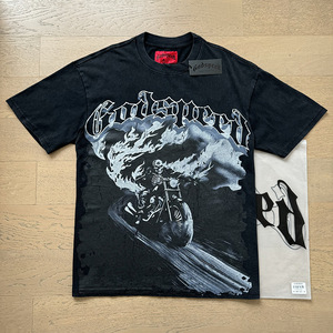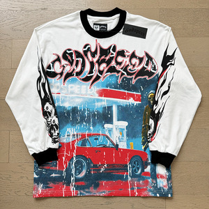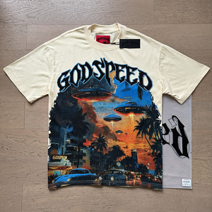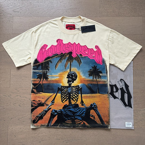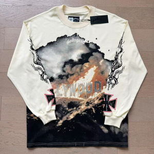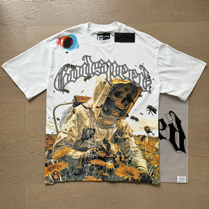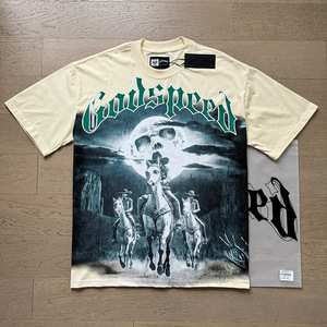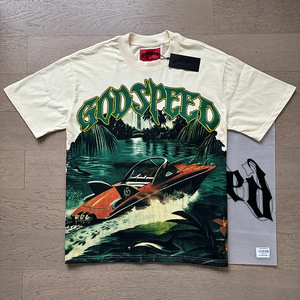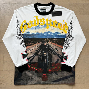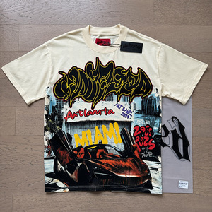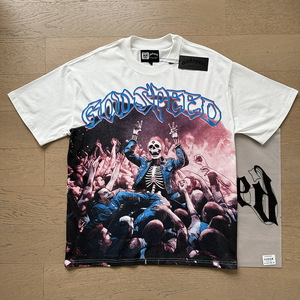 2025 男女情侣美潮摇滚街头复古水洗做旧印花棉短袖长袖