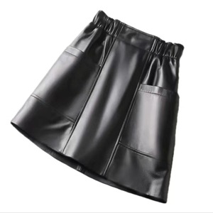 2025秋冬新款松紧腰真皮半身裙A字裙绵羊皮小短裙女包臀显瘦气质a
