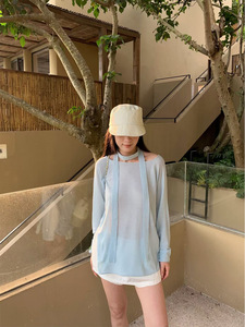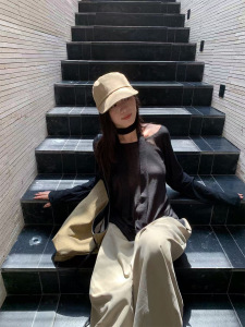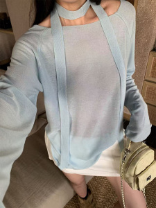 誉一新款2025秋季宽松微透开叉针织衫女甜美围脖长袖上衣女c3038