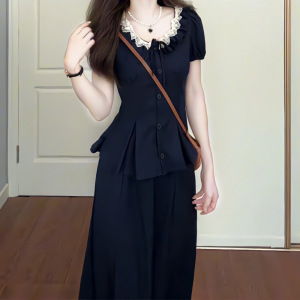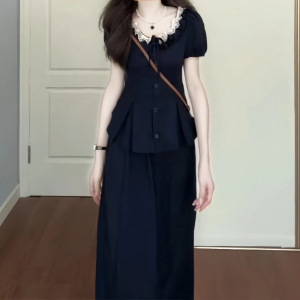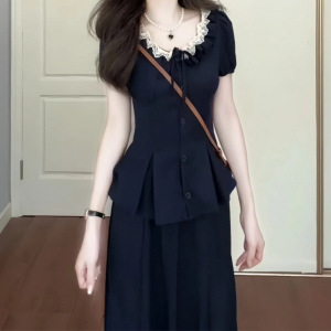 2025夏季新款法式设计感蕾丝系带上衣高腰半身裙收腰显瘦两件套装