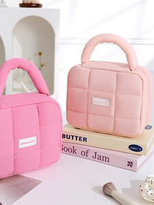 时尚泡芙四方化妆包大容量女手提便携护肤品洗漱包旅行用品收纳包