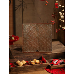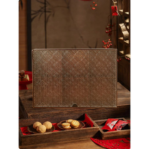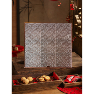 9格深色亚克力盖仿木盒空盒+红色月饮中秋封条一个【约盒子25.7x25.7x6cm小内格8*8cm】