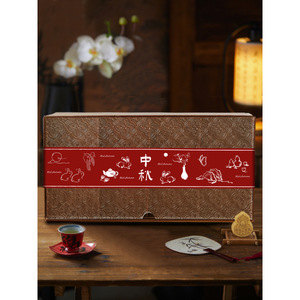 8格深色亚克力盖仿木盒空盒+红色月饮中秋封条一个【约盒子34.3x17.2x6cm小内格8*8cm】