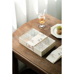 可爱兔印花宣纸+手绘中秋卡片+中秋快乐吊牌+麻绳+六格天地盖牛皮纸空盒一个约24*17*5cm单格