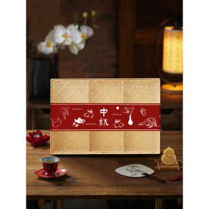 小6格浅色亚克力盖仿木盒空盒+仲秋封条一个【约盒子25.5*17.5*6cm小内格8*8cm】