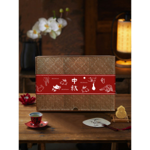 小6格深色亚克力盖仿木盒空盒+仲秋封条一个【约盒子25.5*17.5*6cm小内格8*8cm】
