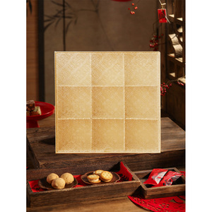 9格浅色亚克力盖仿木盒空盒+红色月饮中秋封条一个【约盒子25.7x25.7x6cm小内格8*8cm】