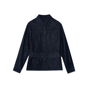 诠释美 NEWOPEN 25秋法式复古风翻领长袖牛仔衬衫女(配腰带)F6266