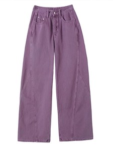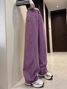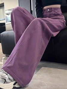 紫色工装阔腿牛仔裤女秋季2025新款今年流行高腰显瘦宽松弯刀裤子