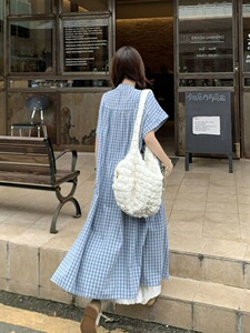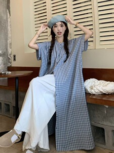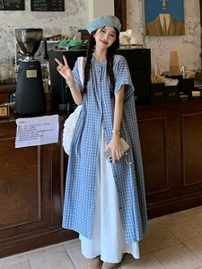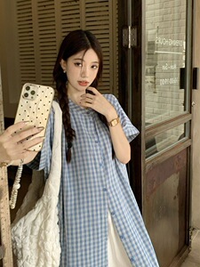 格纹长款设计感度假风短袖衬衫女夏季新款宽松休闲长裤时尚套装潮