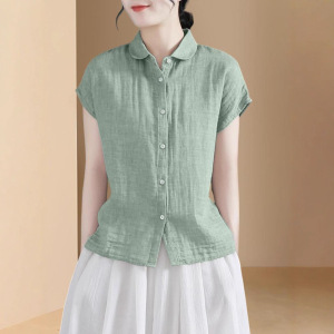 衬衫外贸夏季小衫衬衣短袖2025新款上衣春秋女装棉麻亚麻高端品牌
