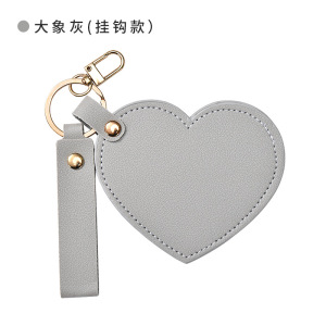 可爱桃心化妆镜爱心旋转皮革礼品小镜子随身便携折叠皮革钥匙扣镜
