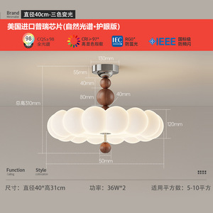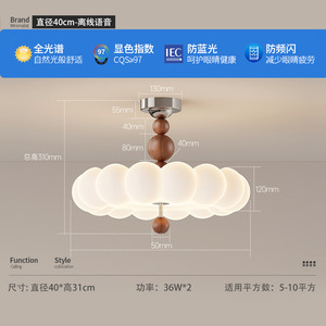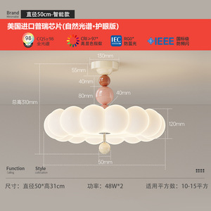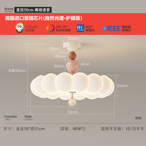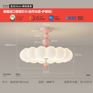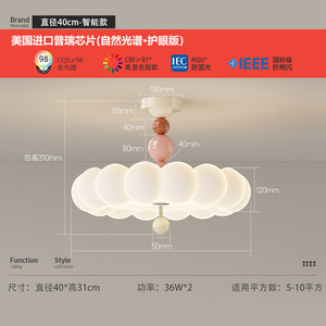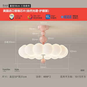 奶油风卧室吊灯法式中古全光谱护眼现代简约儿童房灯主卧吸顶灯