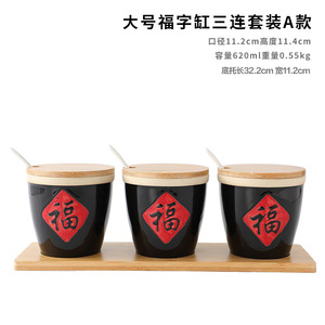小酱缸福缸小陶瓷调料调味缸陶瓷酒店辣椒复古调味罐创意小福字缸