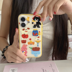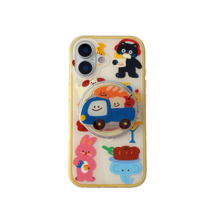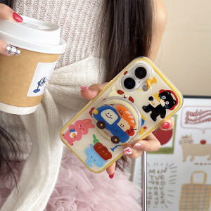 卡通动物插画磁吸适用iPhone16promax苹果15手机壳14/13二合一IMD