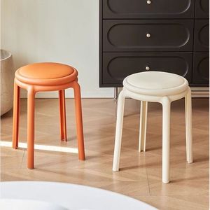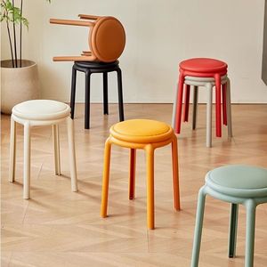 塑料凳子加厚家用可叠放餐桌圆凳久坐舒服椅子软包高胶凳板凳商贸