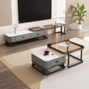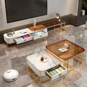 【电视柜茶几金架】雪山白灰柜+茶玻