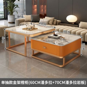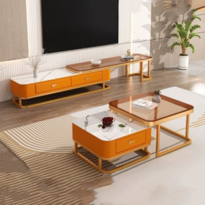 【电视柜茶几金架】雪山白橙柜+茶玻