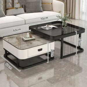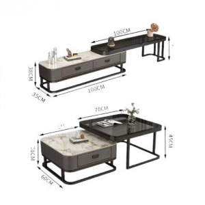 【电视柜茶几黑架】雪山白灰柜+茶玻