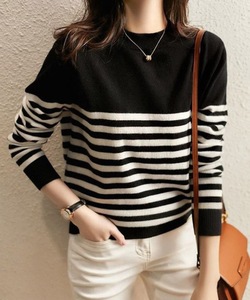 2025春秋季新款条纹撞色羊绒针织衫打底毛衣女修身显瘦气质洋气