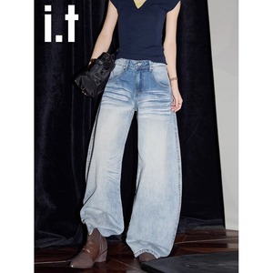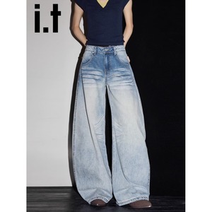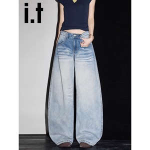美式高街2025春新款今年流行爆款高腰宽松直筒洗水弯刀阔腿牛仔裤