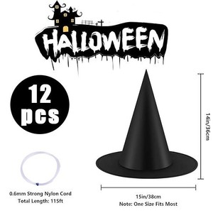 万圣节派对装饰巫师帽12pcs鱼线黑色哈利波特魔法师尖顶女巫婆帽