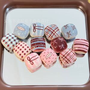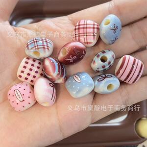 复古蓝粉色系格纹馒头珠 diy亚克力包挂手机链钥匙扣服饰配件材料