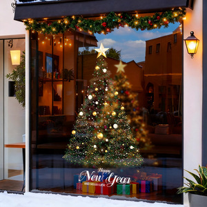 跨境新款圣诞节装饰品静电贴圣诞树窗花场景布置玻璃门氛围贴纸