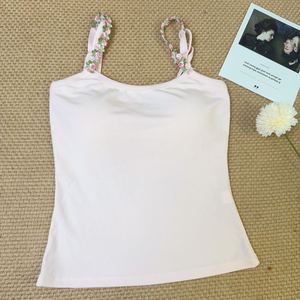 甜妹花朵编织双肩带修身背心夏季带胸垫设计感显瘦打底吊带上衣女
