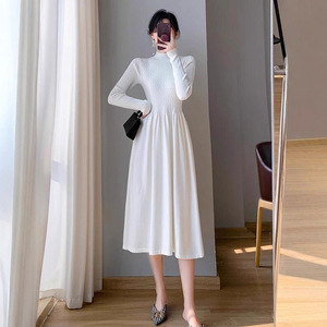 法式轻奢针织连衣裙女秋冬内搭交八修身圆领新款高级感毛衣长裙