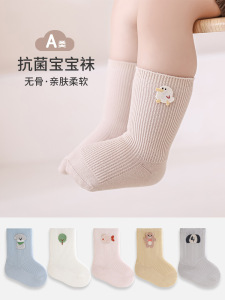 新生儿宝宝袜子秋季新品抗菌无骨松口卡通可爱男童女童中筒袜子棉