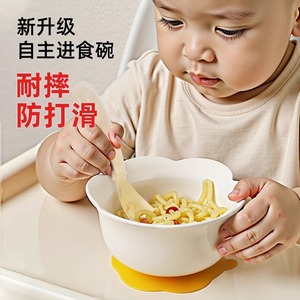 蛋花辅食碗宝宝餐盘进食碗儿童用硅胶吸盘碗训练带吸盘吸盘防摔