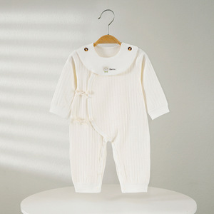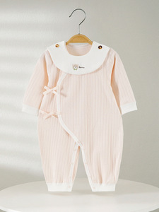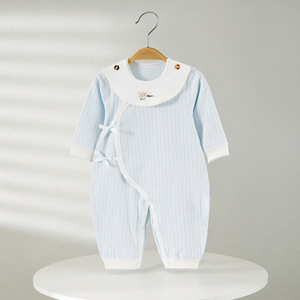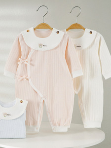 新生儿口水巾连体衣0-3个月春秋季系带保暖秋冬款初生婴儿和尚服